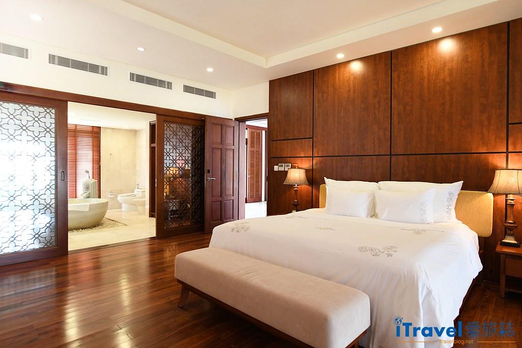 我們退房前到Furama Villas Danang參觀,那裡擁有55間私人別墅,往來之間以高爾夫球車服務房客,問導覽人員「有些別墅裝潢風格不太一樣?」,得知他們這些別墅也售出給私人使用,售出金額+每年維運費用不便宜,甚至還能為你裝潢成喜愛的風格。而別墅區這裡也有公共游泳池,自是只有少數一兩個家庭帶著孩子來玩,私人包場感覺好好阿!有興趣的讀者來這裡看看參觀時拍攝的照片吧!