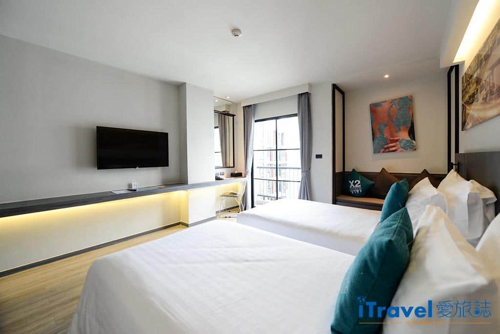 標準房以白綠色系輔輕工業風設計,頗受年輕人喜愛,木質地板取代傳統飯店愛用的地毯,而床鋪軟硬適中更少了我不愛的床裙,加上供應完善備品(響應環保,我們習慣自己攜帶牙刷),若要推薦平價設計旅店,X2 Vibe Bangkok Sukhumvit會在推薦名單上。(🔎訂房價格與住宿評價:agoda | booking.com)