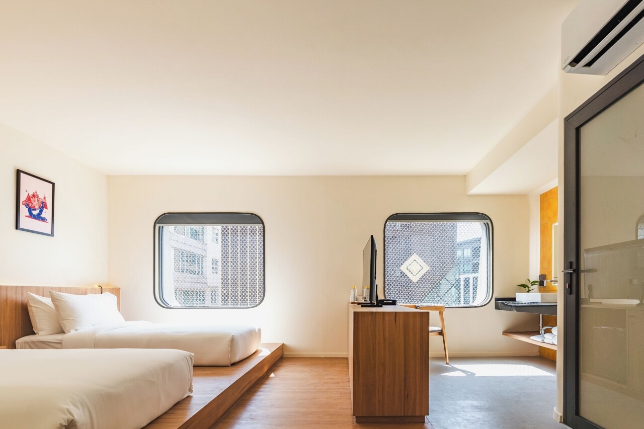 曼谷暹羅維拉貝飯店(VELA be Bangkok Siam)就位於金湯普生泰絲博物館旁,擁有獨特外觀的全新落成建築,採用融合美式復古的懷舊元素,搭配日式簡約的客房設計,客房空間不算太大,但房價倒是相當親民。(🔎訂房價格與住宿評價:agoda|booking.com|Trip|klook)